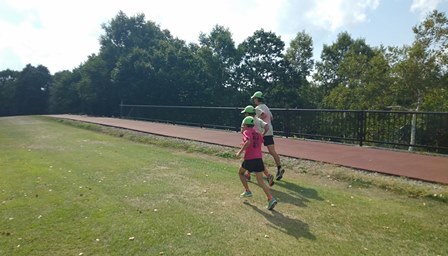 ていねいに手入れされた天然芝に感謝し、しっかりと踏み込みながらテンポよく前に進みます。